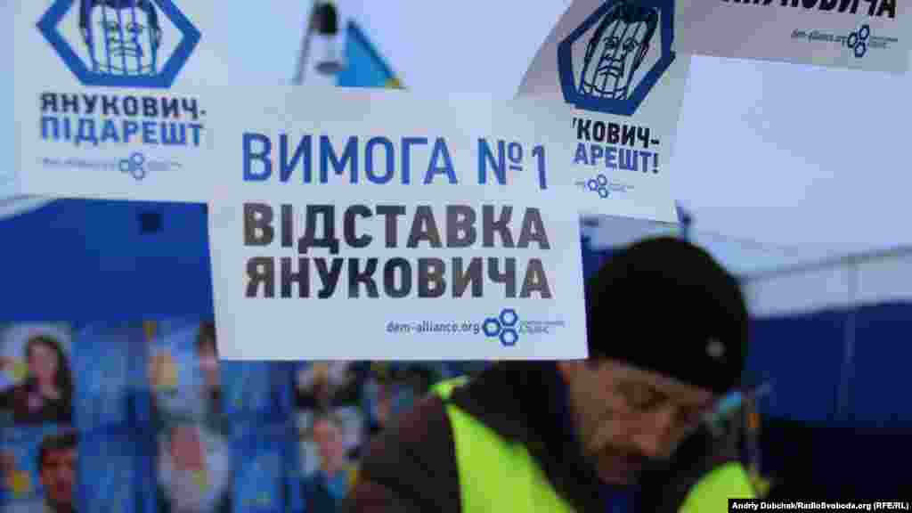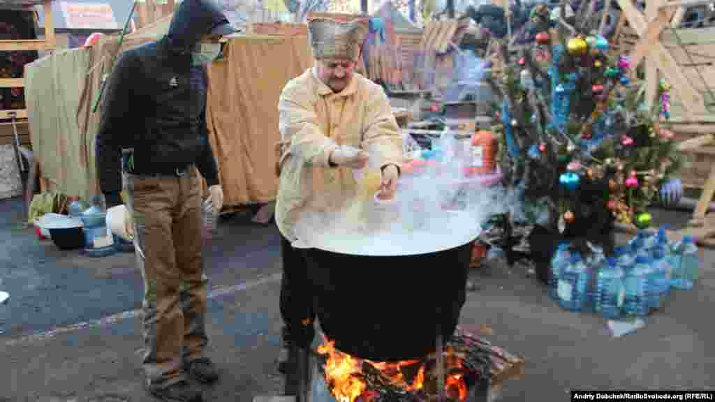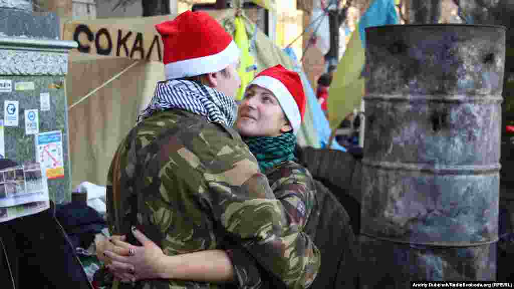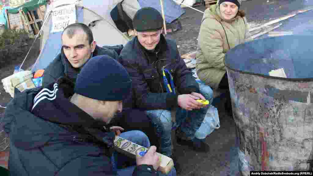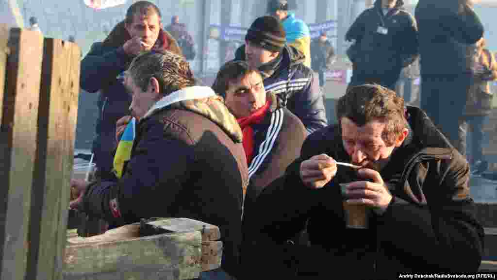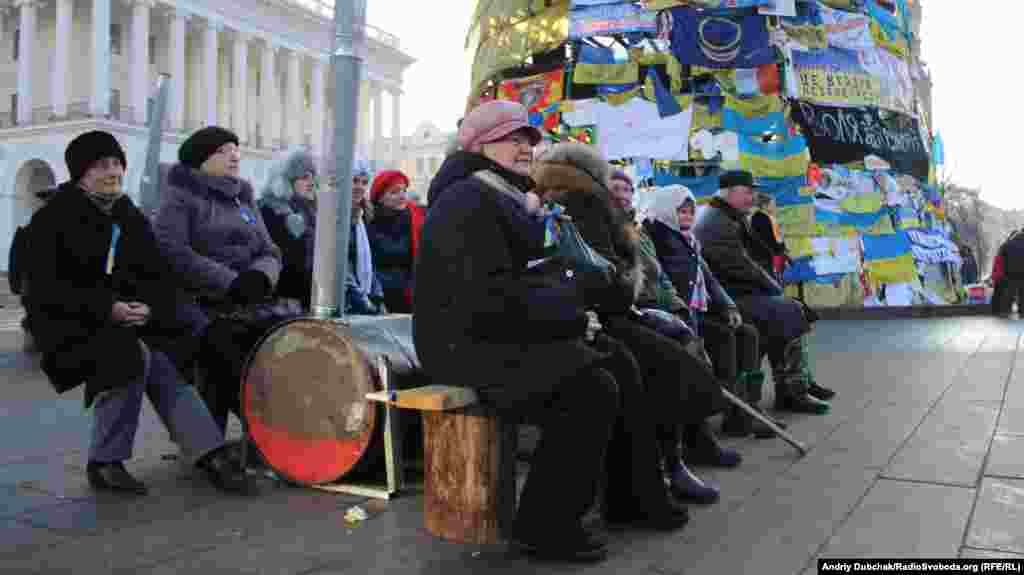Несколько тысяч демонстрантов находятся сейчас на площади Независимости в центре Киева, где уже больше месяца продолжается акция сторонников евроинтеграции Украины. Фотографии Украинской службы РСЕ/РС
