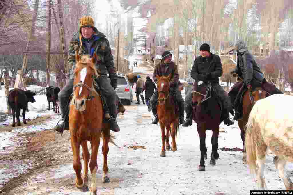Жители алайского села Кабылан-Кол зимой традиционно устраивают скачки и козлодрание. Зимой у сельчан не так много работы, вот и забавляются местные мужчины конными играми.