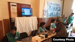 На избирательном участке в Бишкеке. 4 октября 2015 года. Фото Ерлана Карина.