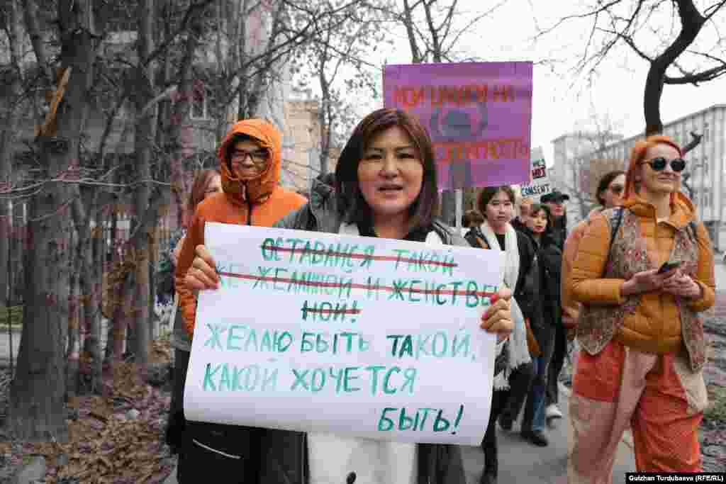 «Я хочу жить в безопасном обществе». Марш за права женщин в Бишкеке