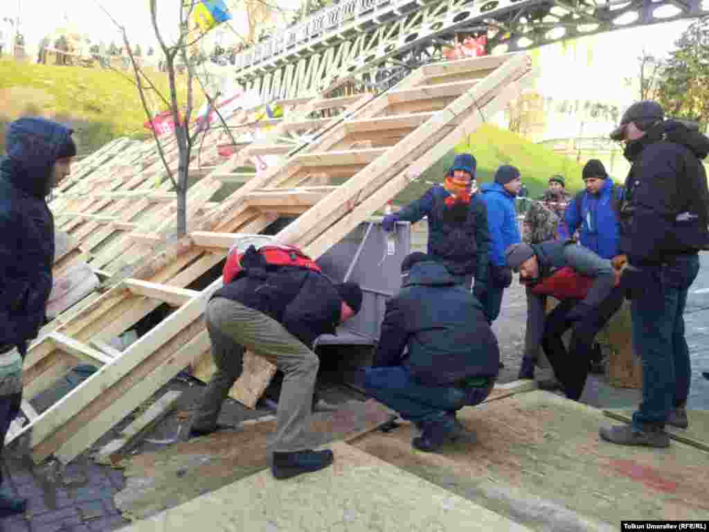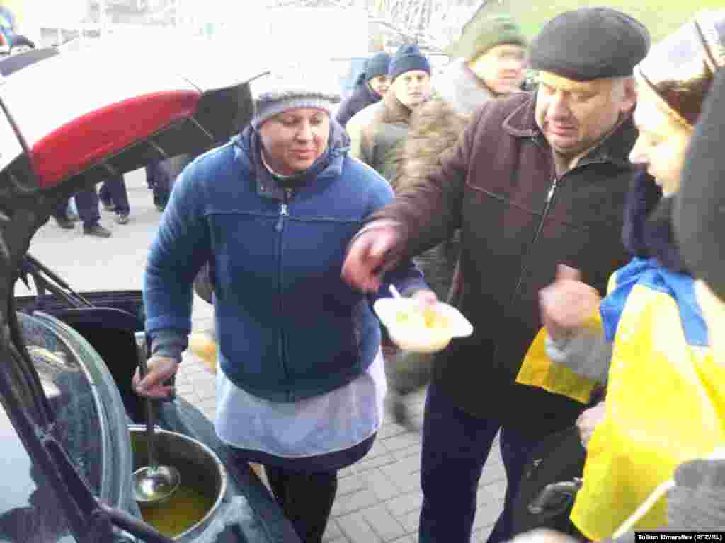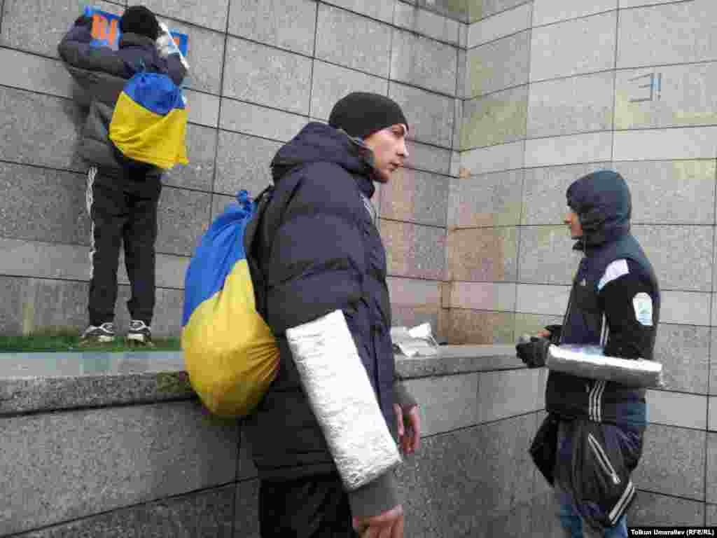 "Евромайдану нужны волонтеры, еда, одежда, лекарства, бытовые вещи. Об этом сообщается в Facebook. В частности, требуются мужчины в охрану, "готовые стоять по 8-12 часов", особенно ночью за баррикадами. Еда: готовая, либо порезанные сыр, колбаса, хлеб, чай, кофе, сахар в кубиках или порционных пакетах, вода обычная и минеральная газированная. Будут признательны за консервы, проверенные временем, особенно за тушёнку". Такие сообщения оставляют в социальных сетях волонтеры с Евромайдана в Киеве. Фотографии корресподента Узбекской службы РСЕ/РС из Киева Толкуна Умаралиева.