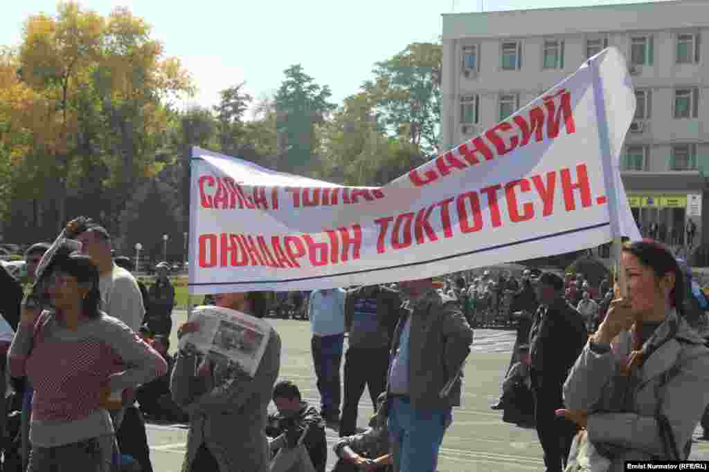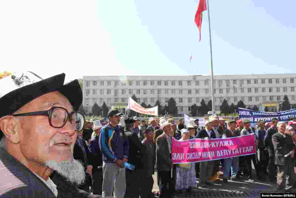 На центральной площади в Оше прошел митинг сторонников оппозиционной партии "Ата-Журт". По разным данным в акции приняли участие около 400 человек. Во время попытки установки юрты на площади возникла потасовка между участниками акции и милиционерами. Фоторепортаж Эрниста Нурматова, "Азаттык", Кыргызская служба РСЕ\РС